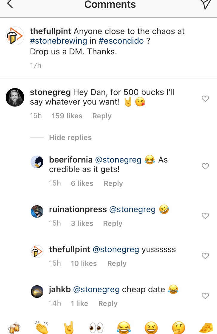 …and then Stone’s Greg Koch comes in with a nice comment:
