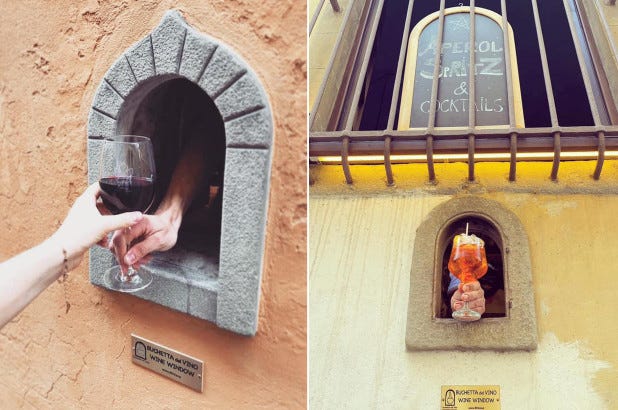 So yeah, the pandemic has sparked Italy to bring back a concept that the bubonic plague brought about: wine windows. The benefit is obvious right now, as little as contact as possible. Just move the concept over to taprooms and beer and we are set.