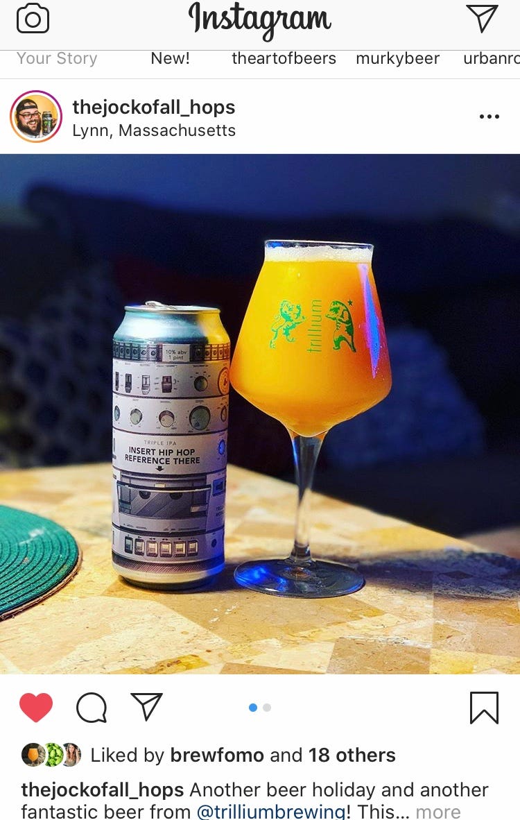 Definitely the beer I feel like I saw the most on Instagram this week, “Insert Hip Hop Reference There” by Trillium. Never had it, always wanted to though. Love that damn can art: